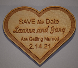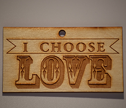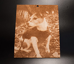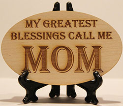 A plaque engraved on finished 1/8” birch wood. The small plaque includes either a black four-inch high plastic stand or a magnet. The large wall plaque includes a hole for hanging.
